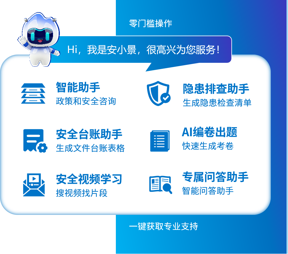 “安小景”是峰景科技依托安泰大模型打造的应急管理领域专业AI智能体,面向基层应急管理人员、企业安全员等用户群体,提供应急安全知识问答、隐患排查、图像识别、台账生成、事故分析等多种智能化服务,助力应急管理向智能化、人性化升级。